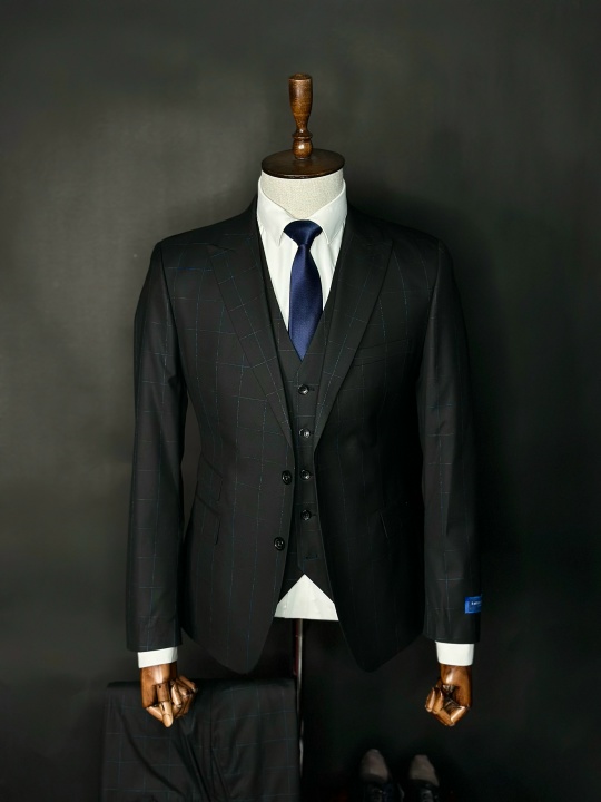 • Пиджак на двух пуговицах, две шлицы на пиджаке, нагрудный карман.