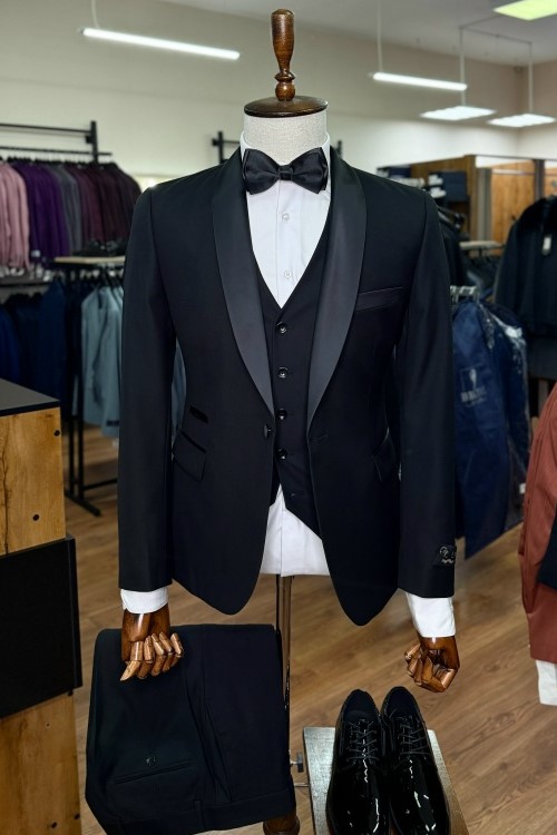- Приталенный пиджак на одной пуговице с шалевым лацканом.