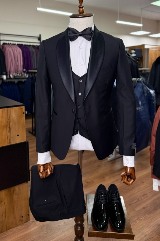 • Приталенный пиджак на одной пуговице с шалевым лацканом.